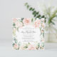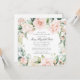 Elegant celebration of a life square invitation features a blush pink rose floral frame. Your loved one's name is written in a traditional script text. All of the text can be easily edited to create a personal remembrance. Their picture is placed on the back.