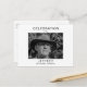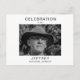 Celebration of Life Postcard. Details on the back. Loss of loved one with celebration. Photo. Years of Life. Black and white filter applied to photo.