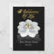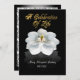Celebration of life Invitation black background and white magnolia with gold text. Invite family and friends to share a brunch or dinner to commemorate and celebrate the life of a loved one who has passed over. Personalise with your loved one's name. Please read your text carefully and make any changes and additions before you order the cards. Memorial Service Invitations & Announcements