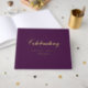 Customer specific, memorial, elegant, simple "Celebration of life" elegant handwriting font, violet funeral foil guest book. Availible in gold, rose-gold and silver foil.
