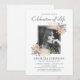 Celebrate the beauty of life even in farewell with our exquisite 'Celebration of Life' invitations. Adorned with delicate watercolor pampas grass, blossoming flowers, and verdant foliage, these invites bring an element of grace to your memorial service. The highlight: a personal space for a portrait of the loved one you're paying tribute to. Additionally, our modern funeral memorial service template can be fully personalised with a simple click. Modify font styles, sizes, and colours to make it truly yours.