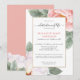 Celebration of life funeral memorial invitation featuring pink floral botanical watercolor. Easily personalise this template for your loved one.