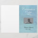 Celebration of Life Memorial Event Program with fully customisable text. Blue watercolor background on outside front, fold sheet to form brochure. Personalise all text for your event. Click on the photo template and upload your own photo, or just delete it if you don't want a photo. A celebration of life event is a wonderful way to share memories and pay tribute to a family member or friend, either in addition to, or instead of, a traditional funeral service. Printed both sides to fold into a booklet. BE SURE TO CUSTOMIZE BOTH SIDES.