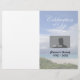 Celebration of Life Memorial Event Program with fully customisable text. Soft ocean beach photo background on outside front, fold sheet to form brochure. Personalise all text for your event. Click on the photo template and upload your own photo, or just delete it if you don't want a photo. A celebration of life event is a wonderful way to share memories and pay tribute to a family member or friend, either in addition to, or instead of, a traditional funeral service. Printed both sides to fold into a booklet. BE SURE TO CUSTOMIZE BOTH SIDES, FRONT AND BACK OF SHEET.