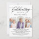 Modern, elegant photo collage Celebration Of Life invitation. Design features 3 photos, typography script and service details on the front. Personalise further with another photo on the back.