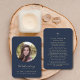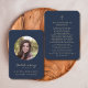 This simple memorial prayer card can be given as a keepsake at a Celebration of Life or funeral service or sent as a special tribute to those who were unable to attend. Personalise this card with a favourite photo of your dearly departed and your choice of prayer or poem on back of the card in elegant gold script typography on a classic navy blue background. Easy to customise.