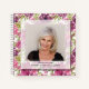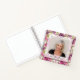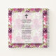 SOFT or HARD COVER remembrance guest book features a photo of your loved one, their name, and details on the front, set against a pink and purple floral pattern. A white cross and a poem or a prayer are printed on the back. Choose blank pages or lined for inside when ordering.