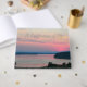 Celebration of life guest book for a memorial celebration that features a picturesque image of a colorful, pink seascape sunset along with the name, birth and death dates of the deceased printed in stylized, silver foil print. Back of guest book features similar image. Edit name and dates on front of guest book and replace with your own names and dates as desired. Select your foil print color.