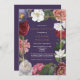 An elegant personalised celebration of life remembrance funeral invitation featuring beautiful floral flowers and a gold frame on a purple background. Designed by Thisisnotme©