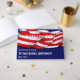 The front and back of this celebration of life veteran memorial designed guest book features red, white and blue bunting along the top over a dark blue background. Fill in the template fields for any guest book required event. You also can delete any of the text or click customise to select a font colour, style, and size you prefer.