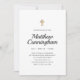 Composed of cursive script and serif typography; All against a backdrop of white background. A simple faux gold cross subtly decors the typography. This is a classic, simple and clean funeral or memorial invitation. "In loving memory" typography.