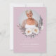Personalised funeral memorial pinky purple and white funeral invitation , Celebrate a life well-lived with our stylish and modern funeral invitation. Featuring three elegant white flowers with folage surrounding your loved ones photo, this invitation is a beautiful way to honour your loved one. With a customisable photo template, you can add a cherished picture to commemorate their life. Let us help you create a meaningful tribute. in the back theres more text space to add any more details youd like people to know for example attire requests , charity donations or flowers , if your going to have a gathering afterwards if so the venue or home address.