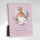 Personalised special memorial pink photo plaque featruring a circle photo template adorned with flowers , a beautiful keepsake to treasure forever.