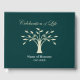 Tree of Life design in light green on dark green Celebration of Life Memorial or Funeral Guest Book binder. Use as guest book or a memory book for guests to view at your memorial service or tribute. Another use is as a place for guests to write in memories or tributes of their own for the family to save as a keepsake.