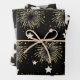 Celebration gift wrap paper in white, gold and colours on black, featuring, fireworks and stars, white gold star pattern and coloured balloons. This versatile selection of wrapping papers can be used for New Year's eve gifts, for birthday gifts, and for almost any celebration or event.
