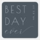 This wedding sticker features a modern and elegant design with a dark navy blue background. The phrase "BEST DAY ever" is prominently displayed in bold, uppercase letters paired with a cursive script for a sophisticated contrast. The minimalist layout emphasizes simplicity, using negative space to highlight the text. Perfect for celebrating your special day, this sticker conveys a joyful and optimistic mood, making it an ideal addition to your wedding decor.