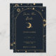 Designed to coordinate with our Celestial Mystic Collection, this unique customisable save the date invitation card features gorgeous gold celestial elements on a dark navy background with an arch border. For more advanced customisation of this design, e.g. changing layout, font or text size please click the "CUSTOMIZE" button above. Please contact me for any questions!