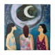 Pretty moon and women artwork. Three women looking up at the moon. Pretty blue background. AI artwork. generativecontent