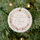 Mark your little one’s first holiday with this Celestial Baby First Christmas design. A delicate watercolor wreath of champagne gold stars, crescent moons, and subtle constellations is accented with blush florals and muted sage greenery, encircling your personalised text. Printed on smooth porcelain with a warm blush background, this dreamy keepsake adds a touch of magic to holiday décor and makes a perfect gift for new parents or grandparents.