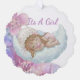 Celebrate the upcoming arrival of your precious little one with this whimsical and enchanting invitation. Featuring a sweet, hand-drawn illustration of a baby girl peacefully sleeping on a soft, fluffy cloud, this design is framed by a delicate border of watercolor flowers in shades of lavender, purple, and soft pink.