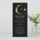 Celestial black wedding programs with the ceremony and wedding party information for guests