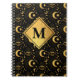 Celestial Black & Gold Stars Moon Pattern Monogram Notebook