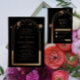 Celestial Black Gold Sun Moon Astronomy Wedding Invitations features gold sun, moon and stars with a golden frame on a black background. Inside is your custom wedding invitation information. Personalize by editing the text in the text boxes. Designed for you by Evco Studio www.zazzle.com/store/evcostudio