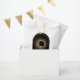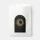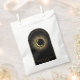 Celestial mystical personalised wedding favour bag featuring arch frame with galaxy milky way midnight sky, star dust, crescent moon and other astrological symbols in black and golden colours and written quote "thankyou for celebrating with us". This product is easily editable. If you need help with the customisation of this product or you need more matching products for this collection kindly message me via Zazzle.