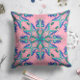 A dreamy pastel pink pillow with teal and blue mandala details that bring balance, joy, and a touch of playful elegance to your home.
