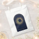 Celestial mystical personalised wedding favour bag featuring arch frame with galaxy milky way midnight sky, star dust, crescent moon and other astrological symbols in navy blue and golden colours and written quote "thankyou for celebrating with us". This product is easily editable. If you need help with the customisation of this product or you need more matching products for this collection kindly message me via Zazzle.