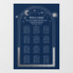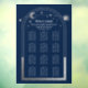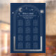 Celestial Blue Silver Sun Moon Stars Mystical Wedding Seating Chart Window Cling features a silver sun, moon and stars frame on a blue background. Inside the frame is the text "Welcome" in elegant silver calligraphy script and your custom wedding reception seating chart information. Personalise by editing the text in the text boxes provided. Designed for you by ©2022 Evco Studio www.zazzle.com/store/evcostudio