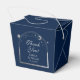 Celestial Blue Silver Sun Moon Astronomy Wedding Favour Boxes features an elegant silver sun, moon and stars with a silver frame on a blue background. Inside is your custom favour box thank you information. Designed by Evco Studio www.zazzle.com/store/evcostudio