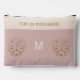 Trendy cottagecore mushroom aesthetic magical celestial fungi and moth girly accessory pouch , toiletry bag in ''rose gold' - blush pink, taupe colours, with a customised text and monogram, the light beige parts are with old canvas texture. Easily personalise the text or leave it blank. - Kate Eden Art