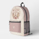 Trendy cottagecore mushroom aesthetic magical celestial fungi and moth girly backpack in ''rose gold' - dusky pink, taupe colours, with a customised text and monogram. Easily personalise the text or leave it blank. - Kate Eden Art