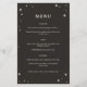 This celestial wedding menu is part of a collection inspired by tarot cards. This design features a border with illustrated stars in a black and cream colour palette. This would be perfect for a celestial themed wedding or anybody who wants a spooky or witchy style for their wedding menu.