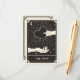 This Boho Save The Date card features a celestial tarot card style design in a black and cream colour palette. The illustration shows a hand holding a heart. The background has a moon and twinkling stars. This would be perfect for anybody having a Halloween or Spooky themed wedding with a palmistry or fortune telling theme.