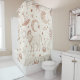 Elegant celestial botanical pattern shower curtain featuring moons, stars, planets, mystical eyes, and delicate leafy branches in a minimal black and cream style. Ideal for astrology lovers, spiritual seekers, nature enthusiasts, and anyone who loves boho celestial aesthetics.