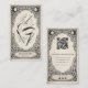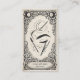 The card features an elegant mystical illustration of eyebrows, tweezers, and beauty tools framed by ornate tarot-inspired details, giving the design a unique celestial aesthetic that stands out from traditional salon business cards.