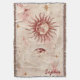 Celestial Burgundy and Gold Custom Name Throw Blanket. Trendy burgundy gold and blush colours. Easy to personalise with custom name. Sun moon and stars celestial theme with modern script writing.