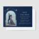 Celestial Chic Blue Silver Photo Wedding Vellum Save The Dates Invitations features a silver coloured sun, moon and stars frame on an elegant blue background. Inside is your favourite photo and your custom save the date information. Personalise by editing the text in the text boxes. Designed for you by ©Evco Studio www.zazzle.com/store/evcostudio