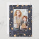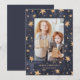 This trendy and modern card features a rich, navy blue colored background with elegant faux gold celestial stars, and your favorite personal photo in the center.
