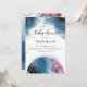 Unique baby shower invitation with gorgeous constellation's globe, watercolor stains, dainty stars and modern hand written calligraphy details in a beautiful blend of blue, navy, teal, turquoise, purple, magenta, fuchsia and gold hues. Ideal for celestial, astrology, cosmic and starry baby shower themes. Part of our "Mystic Garden Celestial" collection with a variety of coordinating products available.