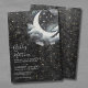 Under the Stars Crescent Moon Celestial Wedding Invitation. Celebrate an evening beneath the stars with this enchanting celestial wedding theme. Featuring a black watercolor midnight sky with stars and a crescent moon surrounded by a dreamy cloudy backdrop, it offers an elegant yet whimsical look. The overall colour palette includes black, white, gold, and grey. The design beautifully blends script typography with a serif font in white. Experience a mystical evening under this crescent moon sky. Please note the 'gold' is just a colour and will not have shimmer. Available as a printed invitation, or as a downloadable digital invite that you can send in e-mail or have printed locally!