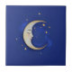 Celestial Crescent Moon with Face Gold Dark Blue Tile
