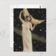 Vintage photograph showing a lovely lady in long gown standing in a dramatic pose before a crescent moon.