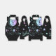 Gift box or favour box with celestial design featuring suns, moons, and stars in pastel colours on a black background.