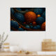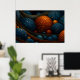 A mesmerising digital artwork featuring glowing blue and orange spheres nestled among swirling, ribbon-like structures. The composition evokes a fantastical universe or microscopic world, rich in texture and depth. Perfect for lovers of abstract art, cosmic themes, and vibrant visual storytelling.
