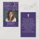 Starry Night Memorial Prayer Cards. Elevate your tribute with these sophisticated and modern funeral prayer cards, featuring a mesmerising design of a starry night sky, punctuated by the gentle glow of the moon and twinkling stars. The back of the card offers space for a poem that can be personalised or substituted with a verse of your choosing. Rendered in a subtle shade of purple, these small memorial prayer cards will become a treasured keepsake, perfectly suited for any funeral service or celebration of life event.