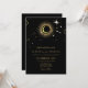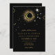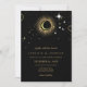 Celestial mystical personalised wedding invitation featuring galaxy milky way midnight sky with star dust, crescent moon and other astrological symbols in black and golden colours. This card is easily editable. If you need help with the customisation of this card or you need more matching products for this collection kindly message me via Zazzle.