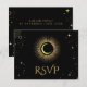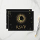 Celestial mystical personalised wedding response card featuring galaxy milky way midnight sky with star dust, crescent moon and other astrological symbols in black and golden colours. This card is easily editable. If you need help with the customisation of this card or you need more matching products for this collection kindly message me via Zazzle.